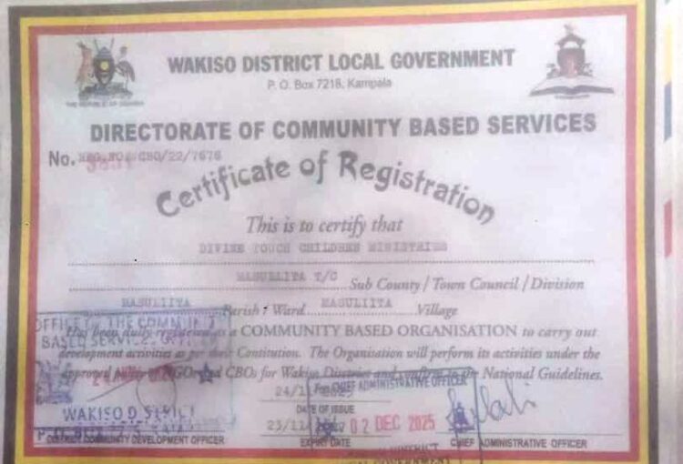 Divine touch children ministries is currently registered as an organization limited by Guarantee by the Registrar of companies of Uganda, we follow the biblical directive to rescue love and care for orphans. We believe that when we do, we are following Christ commandment and we are acting as his hands and feet. We believe it is not just the responsibility of those who are called to full-time ministry to be concerned for orphans, but that is the responsibility of all believers and Christ followers.